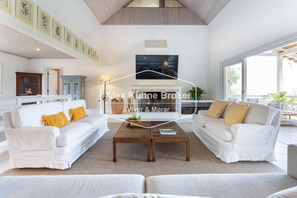 Em um local onde a arquitetura se destaca em meio às vegetações da Mata Atlântica, esta casa surge como um sinônimo de elegância e versatilidade em todos os aspectos que envolvem qualidade de vida e bem-estar. Situada no Condomínio Iporanga em um lote plano, o imóvel é composto por 5 suítes, sendo 1 master com vista para o mar. Ainda sobre a infraestrutura da parte social, contem sala para 4 ambientes com varanda, sala de TV com lareira, cozinha e lavabo. Na área externa, um deck para aproveitar os momentos de lazer, além de uma bela piscina. Para completar, o local também conta com dependências para caseiros e também uma ampla garagem, pronta para abrigar 5 carros. Já